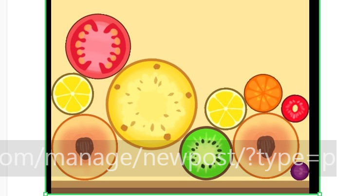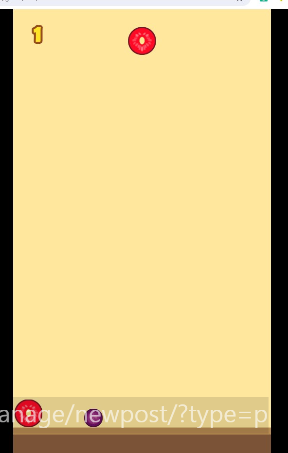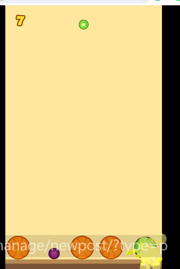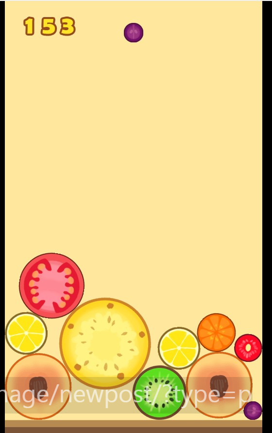 3) 같은 모양의 과일에 떨어트리면 다음 단계로 합쳐집니다. 예) 키위, 키위 합치면 토마토가 되는 형식