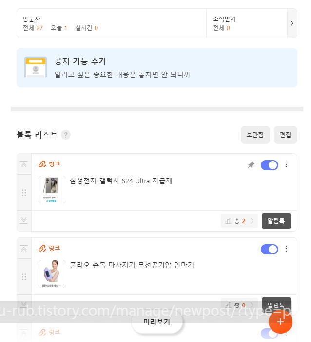 아래처럼 미리 보기를 누르면 내가 올린 링크들을 미리 볼 수 있습니다.