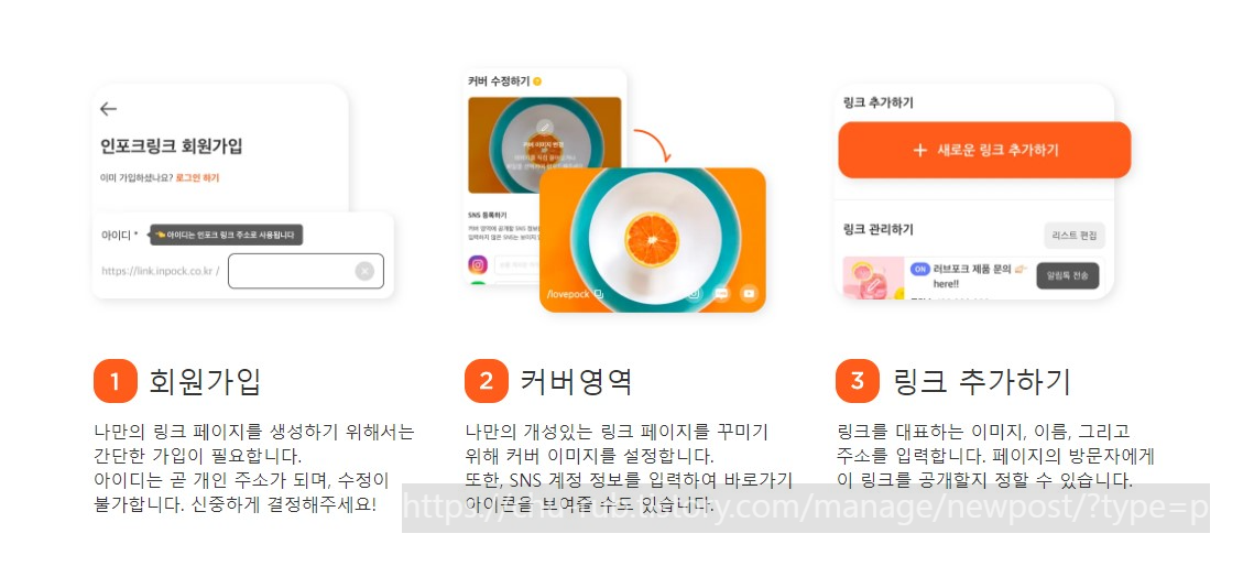 위의 주황색+ 버튼을 누르면 링크 추가가 가능합니다.