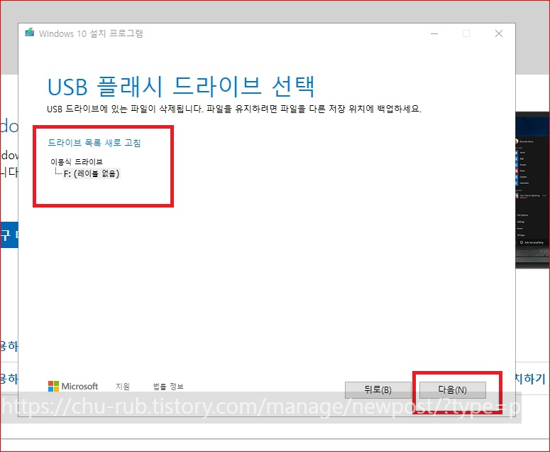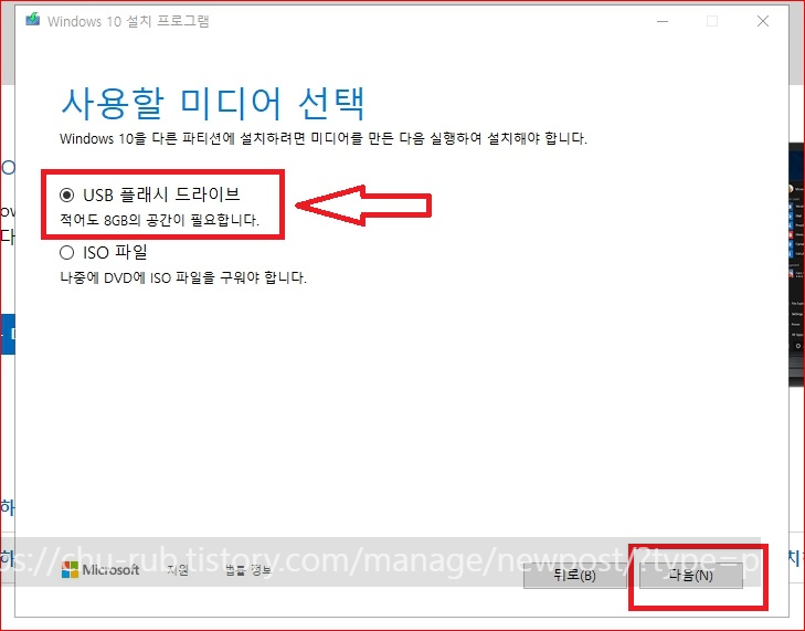 USB 플래시 드라이브 선택 후 다음 클릭