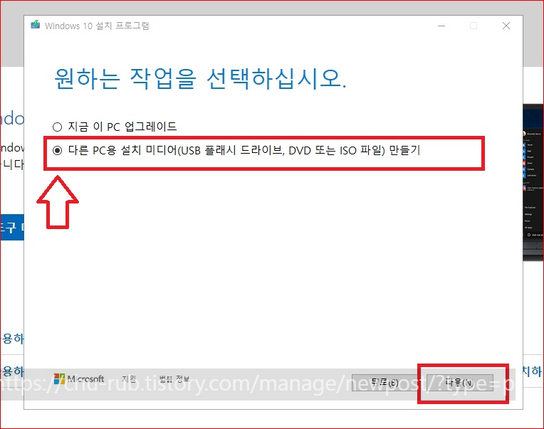 우리는 윈도우 10 부팅 USB를 만들 거라서 아래를 선택합니다.