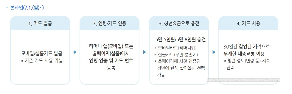 본사업(7.1.(월))부터 별도의 청년 요금(5만 5천원, 5만 8천원)으로 충전 가능