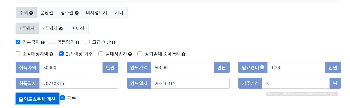 양도일 24년 3월 15일 > 거주기간 3년 정보를 입력 하였습니다.