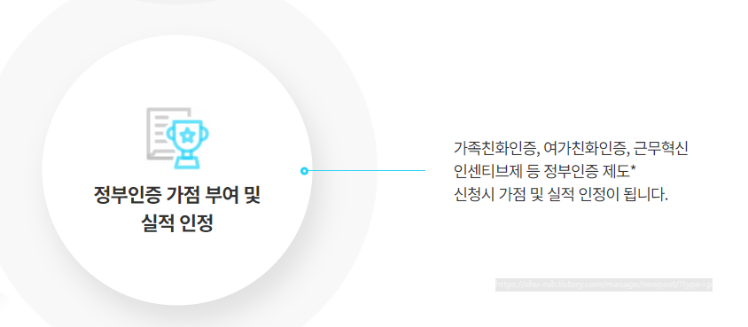여상 가족부, 문화체육관광부 문화정책과, 고용노동부 고용문화 개선정책과 등 실적을 인정받아 정부포상 및 인증기업 홍보 우대카드 발급 등의 혜택을 받을 수 있습니다.