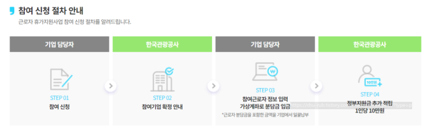 근로자 휴가 지원 사업 참여 신청 절차 입니다.