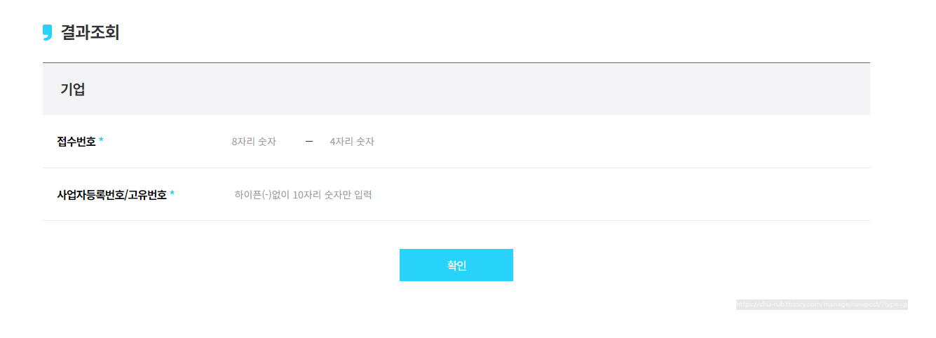 접수번호 / 사업자번호를 입력해서 결과 조회가 가능합니다.