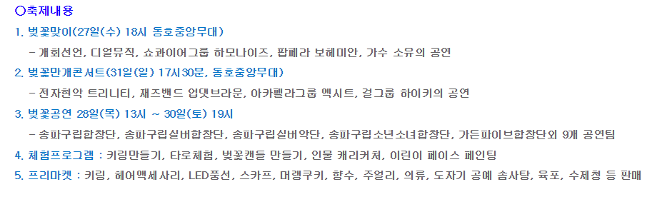 31일 에는 벚꽃만개콘서트가 열립니다. 저녁 17:30분에 진행