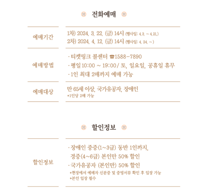 ✅예매시간 : 3월 22일(1차) / 4월 12일(2차) / 14:00 ~ (선착순 마감)