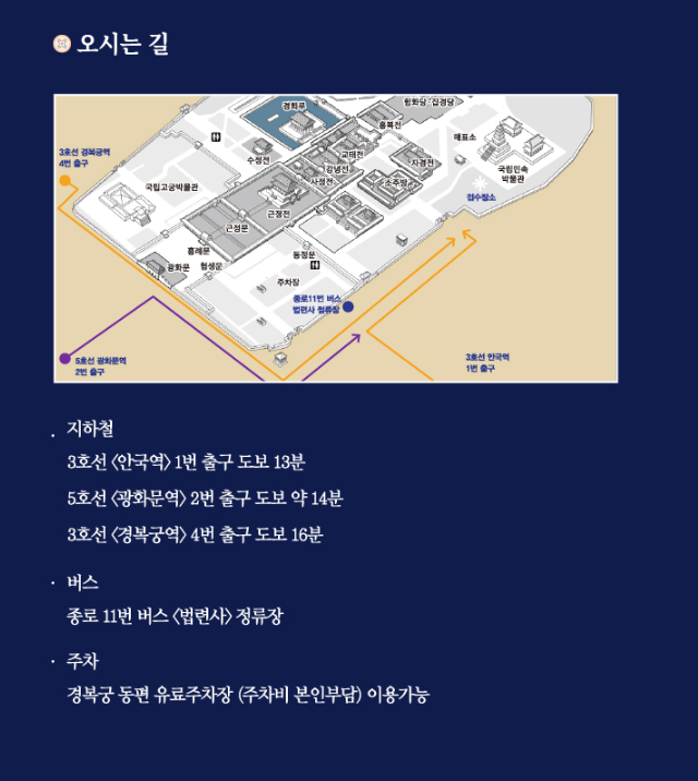✅행사 당일 오전 11시 기상청 예보 기준으로 1~4mm 예보 시 행사는 정상 진행됩니다. 단, 문화재 보호를 위하여 일부 구역 관람이 제한될 수 있습니다.
