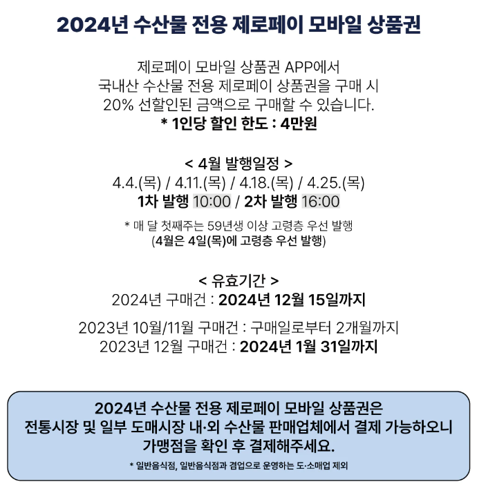 안녕하세요 블랙입니다. 해양수산부가 지원하는 수산물 할인 바다 2024 대한민국수상대전은 20% 할인된 상품권을 구매가 가능합니다. 20% 할인률 정말 대단한 것 같네요.