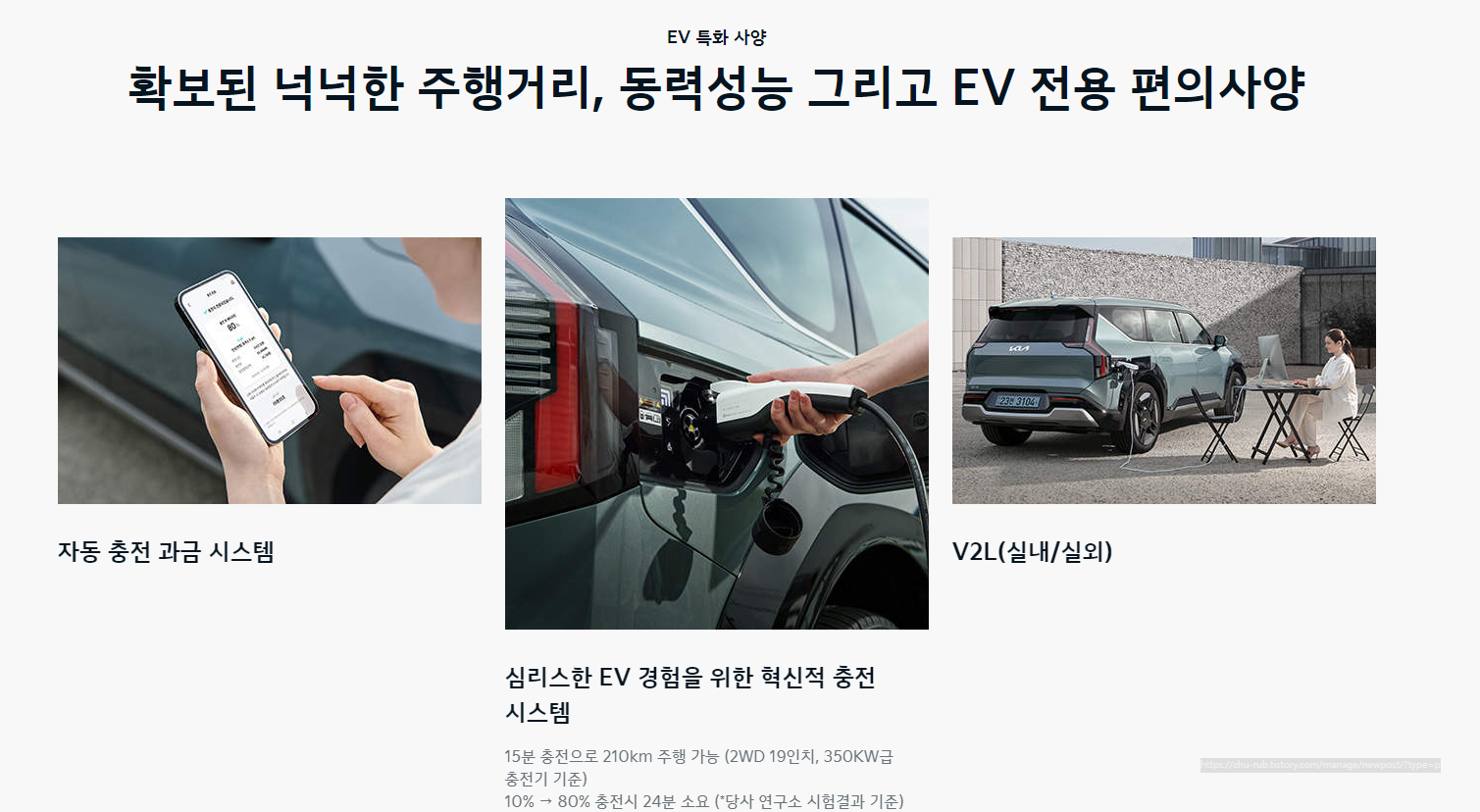 높은 성능과 다양한 기능을 갖춘 EV9은 전기차 시장에서 경쟁력을 가질 것으로 기대됩니다. 세련된 디자인과 넓은 실내 공간, 뛰어난 주행 성능, 그리고 다양한 충전 솔루션 등 매력적인 요소들을 갖추고 있어서 고객들에게 높은 만족도를 제공할 것이고, 브랜드 이미지 강화에도 큰 역할을 할 것 입니다.