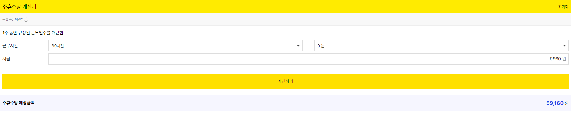 시급은 최저시급인 9860원을 적용했을때 계산하면