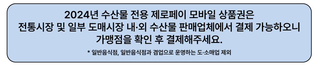 전통시장 및 일부 도매시장 내 외 수산물 판매업체에서 결제 가능하오니
