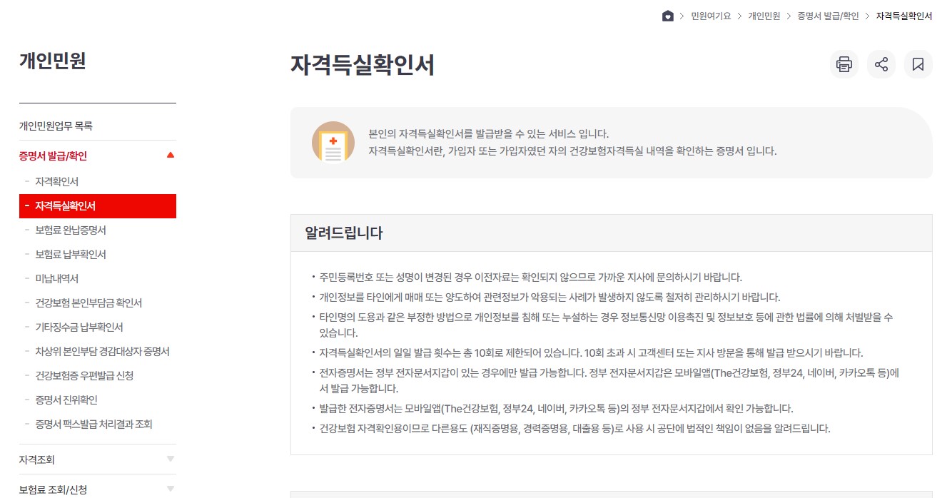 안녕하세요 국민건강보험에서 제공하는 자격득실 확인서 발급 방법에 대해서 안내해 드릴게요.