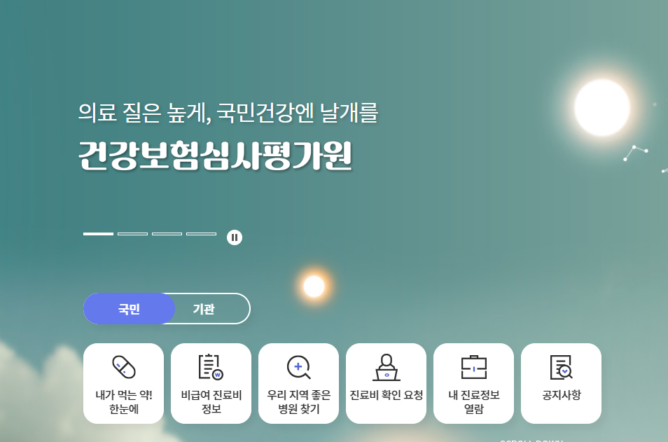 건강보험심사평가원이라는 웹사이트이고 보건복지부에서 운영하는 사이트입니다.
