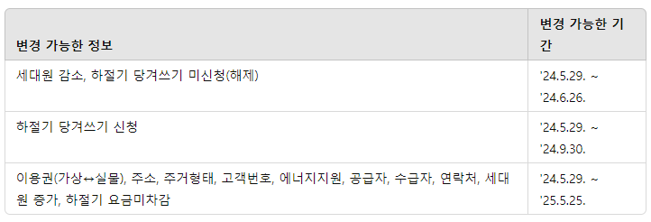 ✅(미신청) 신청 해제를 원하는 경우, 24년 6월 26일(하절기 바우처 사용기간 전)까지 변경 신청