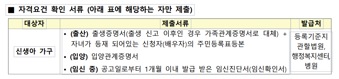| 동봉서류 | ① 공급신청서(15쪽) ② (공통서류) 개인정보 수집·이용 및 제3자 제공 동의서, 주민등록등본, 주민등록초본, 가족관계증명서 ③(추가서류) 7~8페이지(아래 확인) 확인 추가제출서류 확인하여 해당하는 자만 추가 동봉 |
