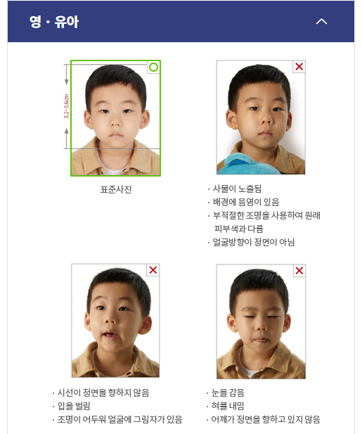 ✅본인이 직접 촬영한 사진은 여권사진 규격에 적합한 경우에만 사용 가능함