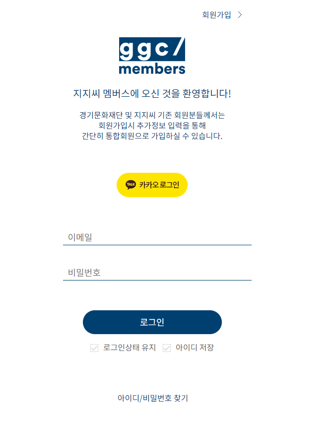 ✅경기상상캠퍼스 신청을 위해서는 홈페이지 로그인을 해야합니다.