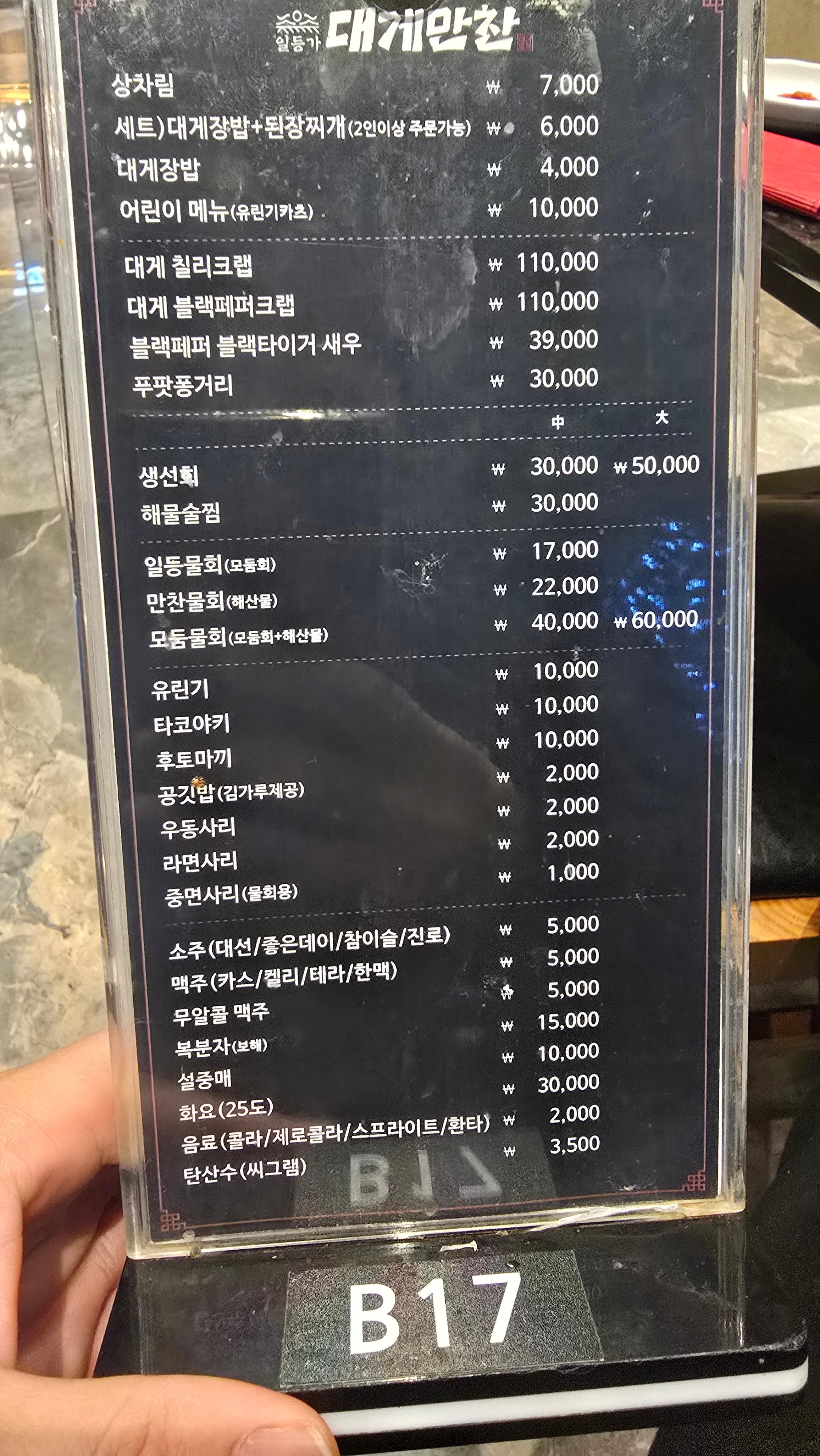 <대게만찬 메뉴판>
