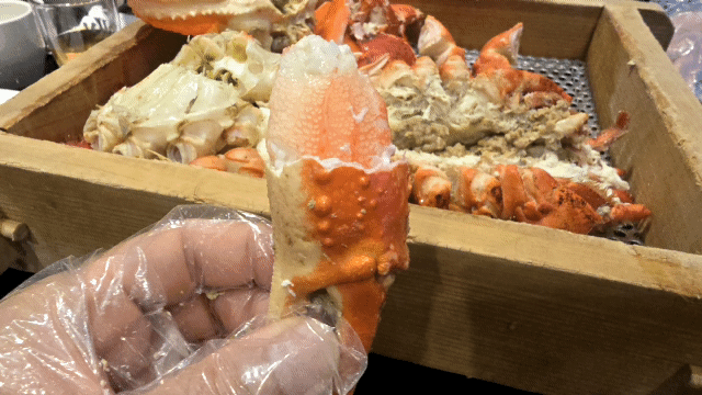드디어 기다리고 기다리던 메인 요리, 대게와 랍스터가 등장했습니다.