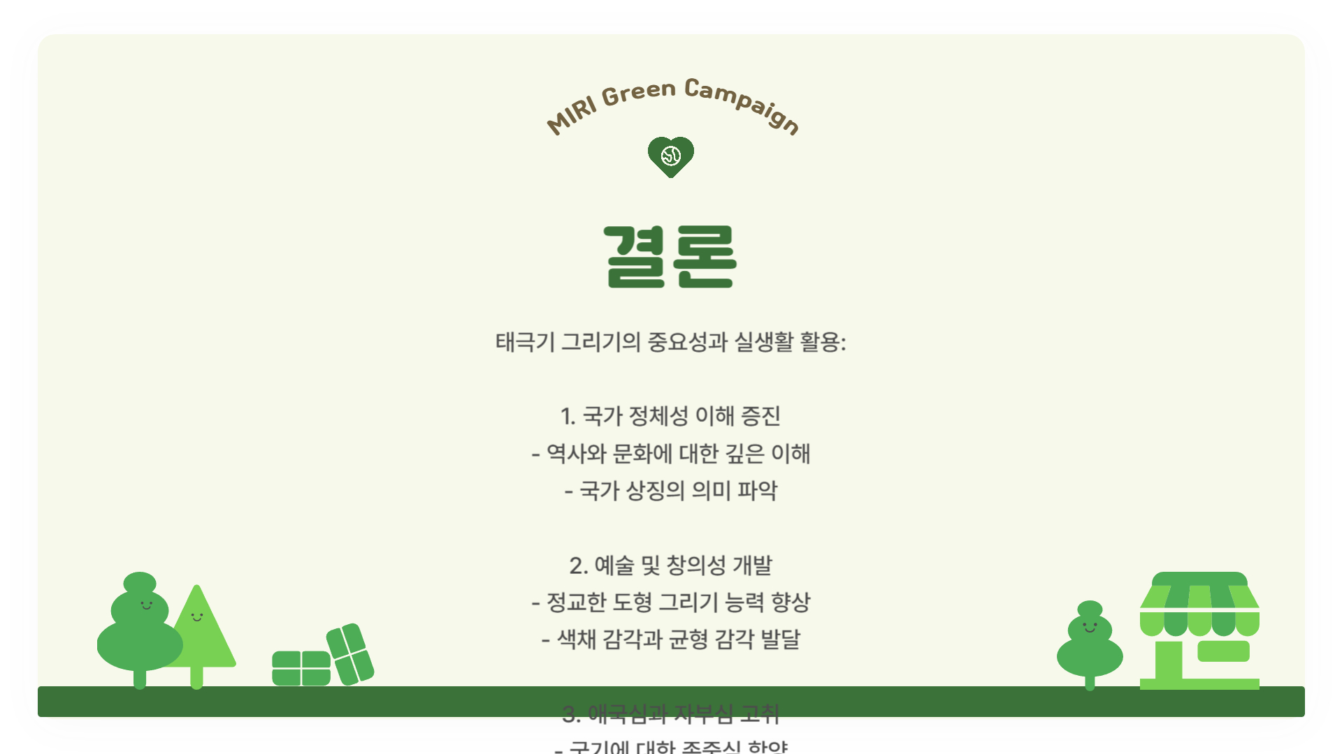 - 흰색 바탕: 밝음과 순수, 그리고 평화를 사랑하는 우리 민족의 성향을 나타냅니다.