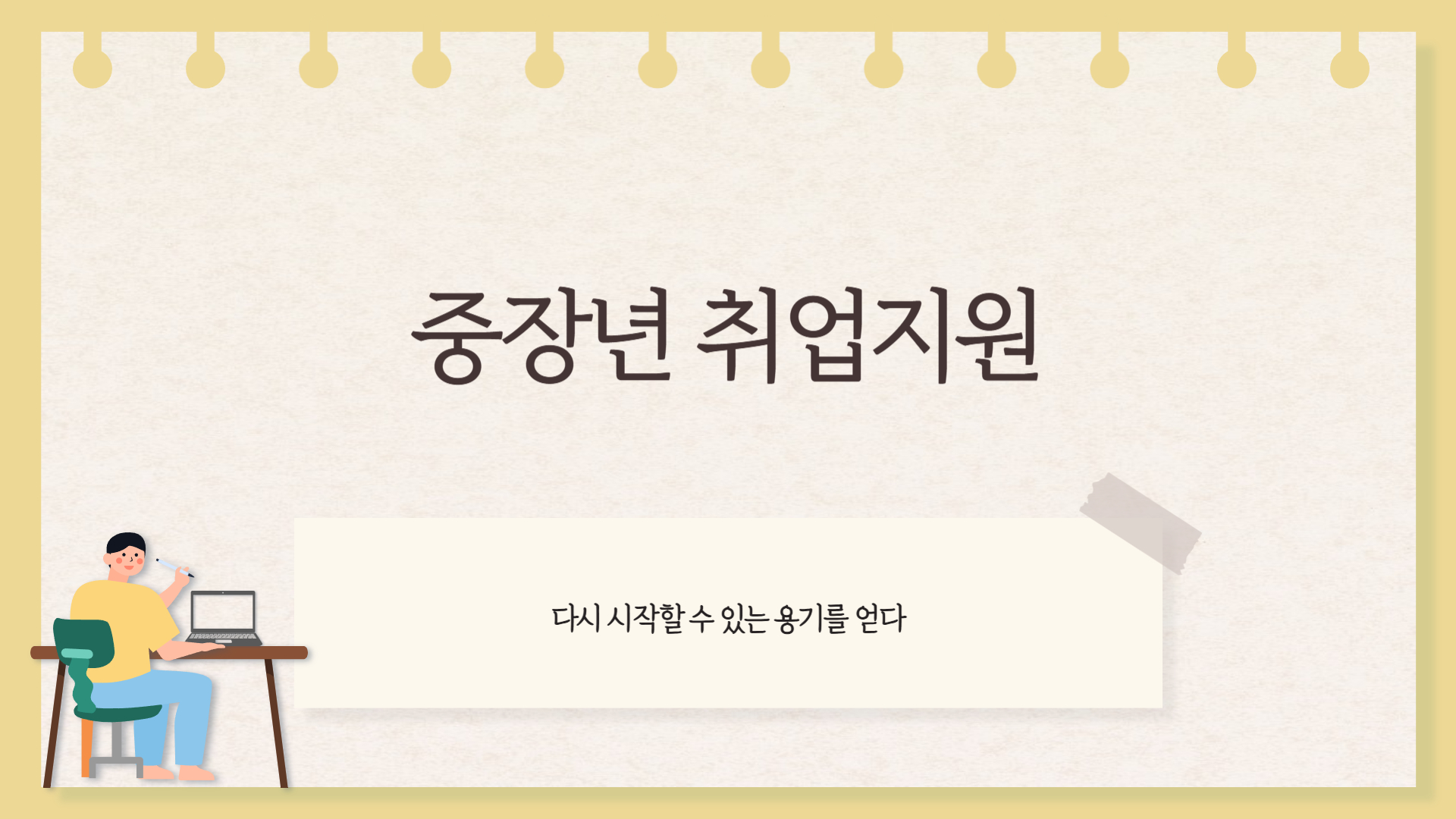 요즘은 컴퓨터 활용 능력, IT 기초 교육, 고객응대 스킬 등 실무 중심의 교육도 함께 제공돼서 다시 현업에 나갈 수 있는 자신감을 얻게 되죠. - 이력서 작성 및 면접 클리닉