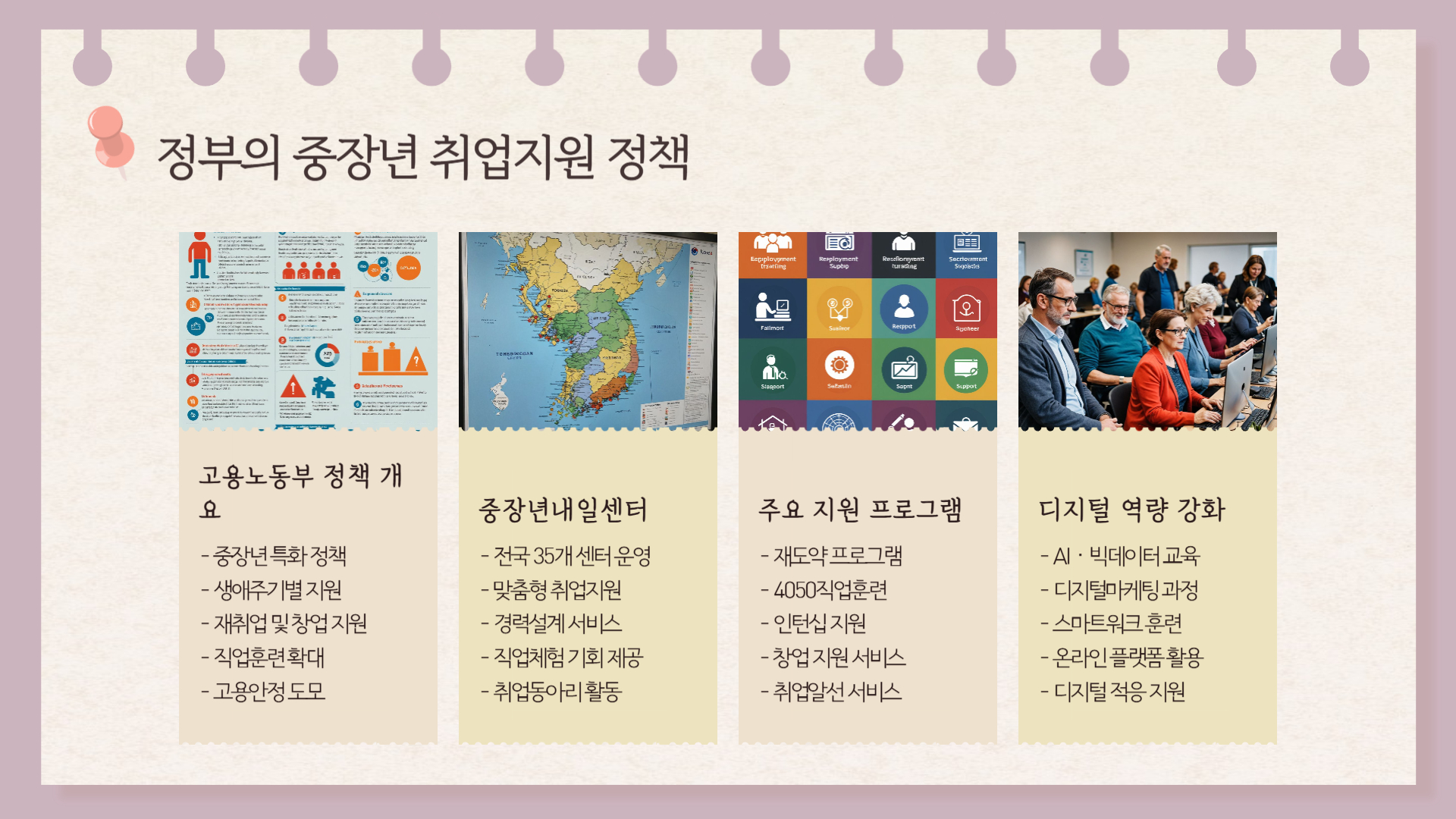 중장년층을 위한 취업지원은 생각보다 훨씬 다양하고 체계적이에요. 대표적인 내용은 다음과 같아요.