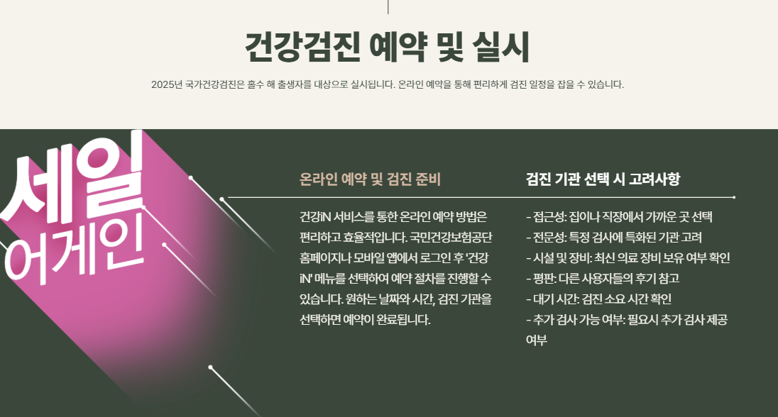 - 피부양자: 만 20세 이상이며 출생 연도가 짝수인 경우, 2년에 1번 대상입니다. 2025년은 홀수년도 출생자(예: 1985년생, 1991년생 등) 가 해당됩니다.