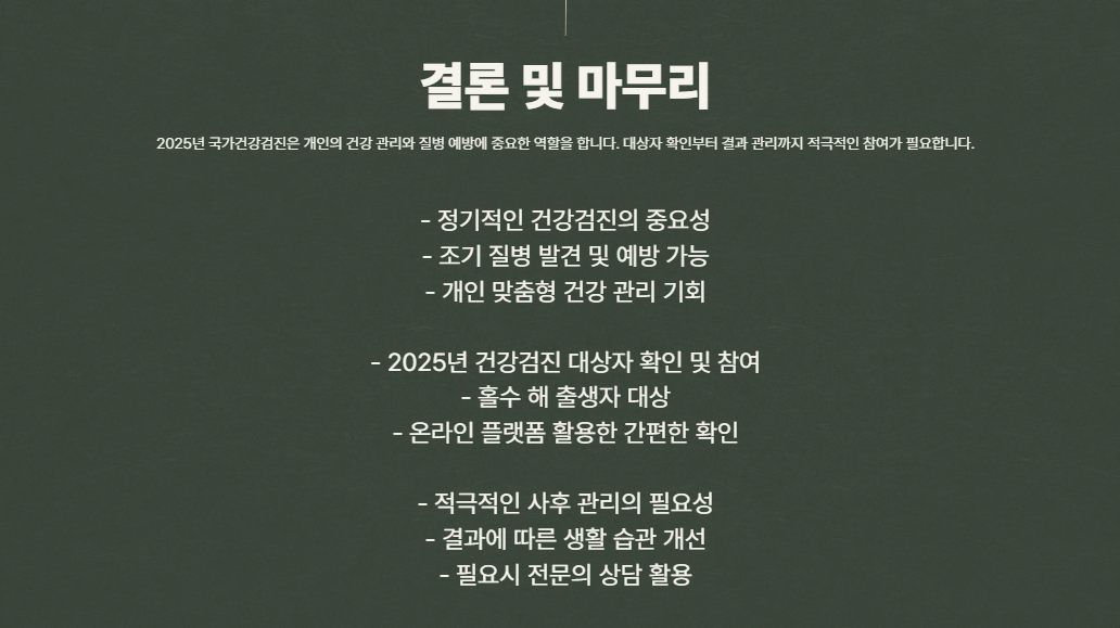 건강검진은 단순한 검사가 아닙니다. 조기진단이 가능하고, 건강보험공단이 전액 또는 일부 비용을 부담해주는 공공서비스입니다. 특히 만성질환, 암, 생활습관병의 조기 발견에 매우 효과적입니다.