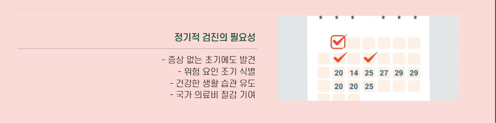 - 검진기관 사전 예약 필수 – 특히 연말에는 예약이 몰리므로 여름~가을 사이 검진 권장