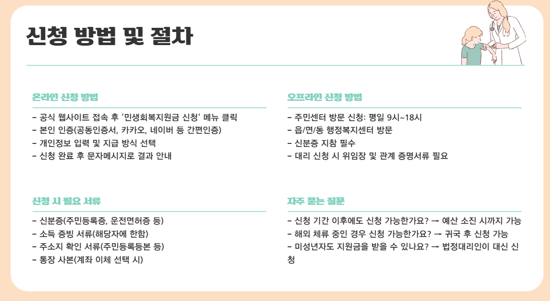 - 지자체 또는 복지로 홈페이지, 정부24 등을 통해 신청